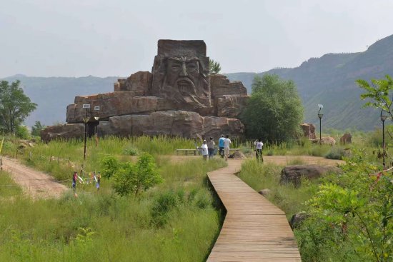 伏羲观天景观矗立山巅,是溯源伏羲文化的必打卡之地。山体天然塑形,浑然天成,若伏羲凝神远眺、仰观苍穹的伟岸身姿,气势恢弘,栩栩如生。登临此处制高点,视野豁然开朗,乾坤湾太极山水全景铺展眼前。九曲黄河蜿蜒缠绕,山峦沟壑阴阳分明,仿佛能体悟当年伏羲感悟天地、参悟自然大道的壮阔心境,山水与文脉相融,氛围感拉满。