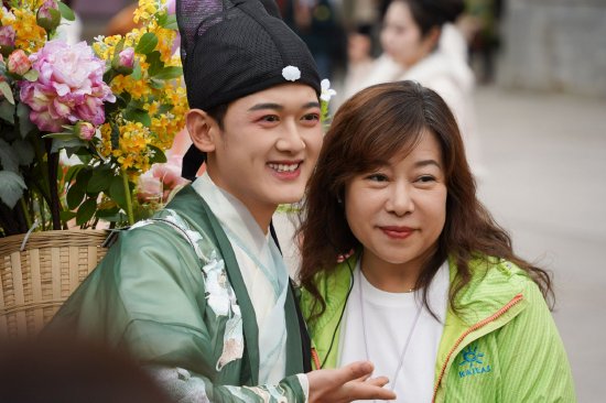 节日期间,华清宫延续春日浪漫与上巳古韵,推出升级版“我就是杨玉环”主题活动。景区特邀数十位复刻游戏角色与影视经典形象的杨玉环扮演者化身“时空引路人”,与游客零距离互动并合影留念。游客通过对接暗号领取专属“大唐飞钱”,解锁唐宫联动趣味玩法。于此同时,“十二花神”沉浸式演绎每日定时上演,以诗舞相融的唐风雅韵再现盛唐上巳春嬉盛景,“簪花郞”为游客送花赠福,定格春日限定美好。活动更特别设置了复原唐制裙幄宴,游客可在此赏花对弈、雅集闲谈,沉浸式感受“裙幄围宴、踏春寻芳”的盛唐风雅,在动静之间尽享千年传承的春游意趣。