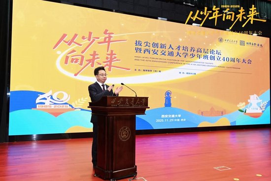 11月29日,“从少年,向未来”——拔尖创新人才培养高层论坛暨西安交通大学少年班创立40周年大会在西安交通大学兴庆校区举行。西安交通大学校长、中国工程院院士张立群,西安交通大学西迁老教授李能贵、胡奈赛,陕西省教育厅副厅长何玉麒、陕西省教育学会会长张新民,中国科学技术大学党委常委、组织部部长申成龙,西安交通大学原副校长程光旭,校党委常委、组织部部长周远出席活动。少年班校友、校内任课教师代表,兄弟院校、中学代表等约500名嘉宾共同参会。大会由西安交通大学校长助理单文华主持。