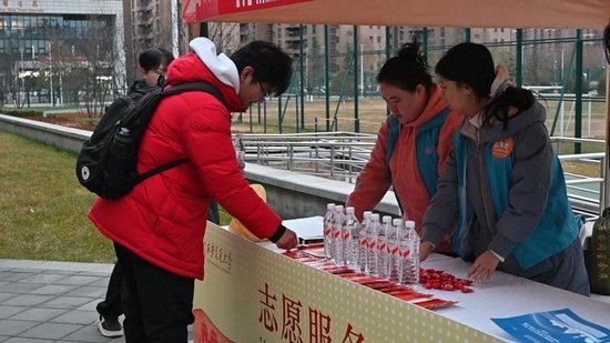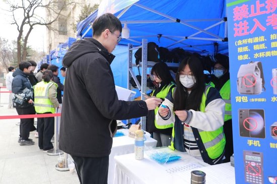 志愿相伴显温情。考点在三个考区科学设置志愿服务点,组织150余名志愿者组成考务、引导、应急等专项服务队,提供约300人次服务。志愿者们清晨到岗,在关键点位为考生提供路线指引、物资存取、应急帮助等贴心服务。各服务点配备包含文具、暖宝宝等物资的“暖心应急包”,及时响应考生需求。志愿者们热情细致的服务,成为了寒冬校园里一道温暖的风景线。