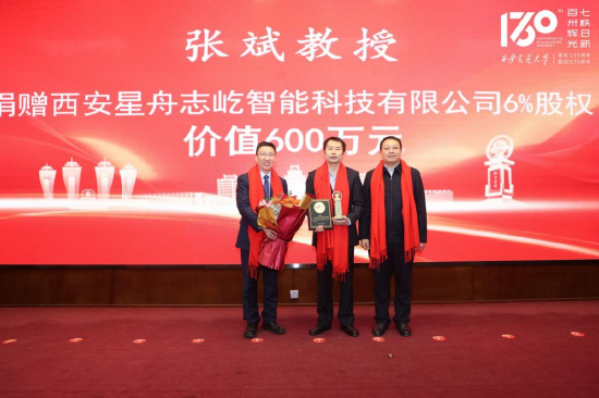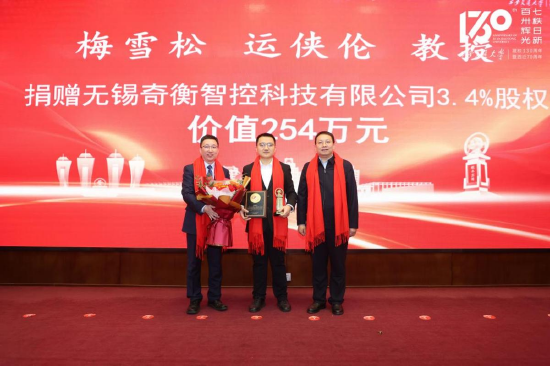 现场还举行了股权捐赠仪式,西安交大教授伉俪、一位匿名教授、机械学院梅雪松教授与无锡奇衡智控科技有限公司董事长运侠伦、软件学院张斌教授团队捐赠公司股权,用于支持学校发展。