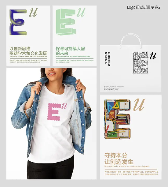 2022年,伴随学校再迈新阶段,欧亚对学校Vl进行全面焕新。logo在保留原有视觉识别的基础上,将中、英文校名排列在指数序列,更加突显E这一核心主体。