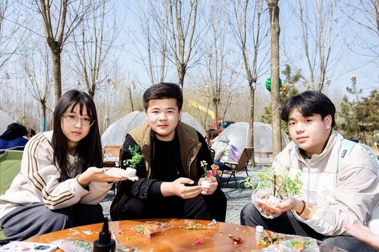 为进一步丰富活动内涵,让环保理念深入人心,让校庆氛围更加浓厚,本次活动还同步设置多个绿色互动环节,让师生们在趣味实践中感受绿色魅力,传递环保初心。在绿色手印签到区,师生们蘸取绿色颜料,在签到点按下自己的手印,一个个绿色的手印汇聚成一片象征团结与生机的“绿意海洋”,既彰显全体师生共筑绿色校园的坚定决心,也寓意着大家同心同德、携手共进,共同守护母校的绿水青山。在手工创作区域,大家动手制作创意作品,在趣味体验中传递环保理念,献礼校庆华诞。活动还特别结合学院建校二十周年的重要节点,邀请了20位年满20岁的学生代表,将精心准备的祝福卡片悬挂于树木之上,以同龄之姿共贺学院二十芳华,诉说对母校的感恩与祝福,实现青年学子的青春成长与学院的校史发展同频共振,也让本次植树活动更具纪念意义和青春气息。