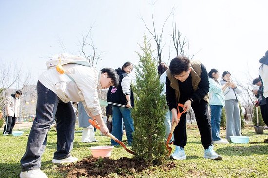 在植树现场,师生们分工协作、默契配合,扶苗、培土、浇水,每一个环节都井然有序、一丝不苟。大家亲手栽下一株株树苗,为校园增添盎然生机。活动中,师生们为树苗悬挂专属纪念铭牌,写下对学院二十周年华诞的真挚祝福,将爱校荣校情怀与绿色环保理念融入每一株新苗之中。此次栽种的二十周年纪念树,既是对学院二十年办学历程的致敬,也象征着学院未来发展生生不息、枝繁叶茂。