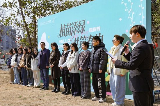 活动伊始,团委老师赵荣玉宣读绿色环保倡议书。她结合学院建校二十周年的时代节点,从校园生态保护、绿色生活践行、青年责任担当三个维度发出倡议,号召全体学子牢记生态责任,主动践行绿色低碳生活方式,积极参与植绿、护绿、爱绿各项实践,用双手呵护校园一草一木,让绿色成为校园发展的鲜明底色;同时呼吁广大青年志愿者以此次活动为契机,将环保初心与爱校情怀深度融合,以青春之我、奋斗之我,践行志愿服务精神,把对母校的祝福寄托于每一株新苗,用实际行动为学院二十周年校庆添彩,为建设美丽校园、践行生态文明贡献青春力量。倡议宣读完毕,院长冯爱玲、党委书记刘琳移步镜头前签名,寄托对学院绿色校园建设的美好期许,正式拉开本次植树活动的序幕。