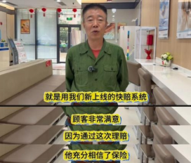 陕西咸阳市区本部代理人程瑶经理说:“国庆假期客户赔款也能秒到账,目前咸阳四家主流医院都有快赔,对客户来说很方便,未来希望公司能对接更多的医院。”
