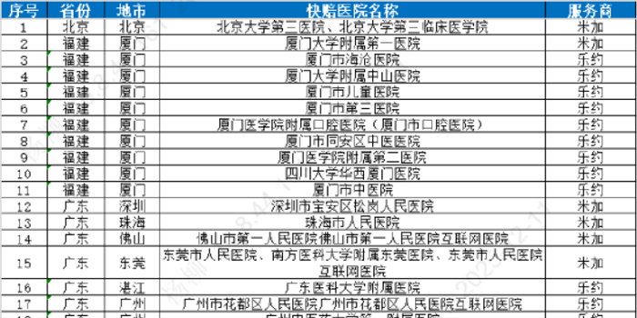 截至11月,新华保险快赔服务已覆盖全国23个省市的180家医院,三级及以上级别医院占90%,为客户锁定身边的健康守护站。其中包括北京大学第三医院、浙江大学医学院附属第二医院、西安交通大学第二附属医院、湖北省人民医院、郑州中心医院等100多家三级甲等综合性大医院。未来新华保险将持续拓宽快赔服务医院覆盖范围,让极速高效省心的快赔服务惠及更多客户。这份清单请查收,您可查询距离最近、最方便的快赔医院。