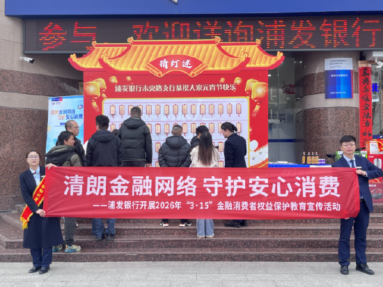 关注金蛇辞旧岁,骏马踏春来。在元宵佳节与“3·15”金融消费者权益保护教育月交汇之际,浦发银行西安未央路支行紧扣“清朗金融网络 守护安心消费”活动主题,将传统民俗文化与金融消保知识深度融合,创新开展“金融护权益 灯谜闹元宵”主题活动,以群众喜闻乐见的形式,让金融知识“飞入寻常百姓家”,在欢声笑语中筑牢金融安全防线。