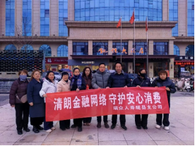 关注为进一步提升消费者金融素养,增强风险防范意识,筑牢金融风险防线,切实维护金融消费者合法权益。近日,瑞众保险陕西分公司宝鸡中支陇县支公司全体员工在西门口广场,开展以“清朗金融网络 守护安心消费”为主题的3・15金融消费者权益保护教育宣传活动。
