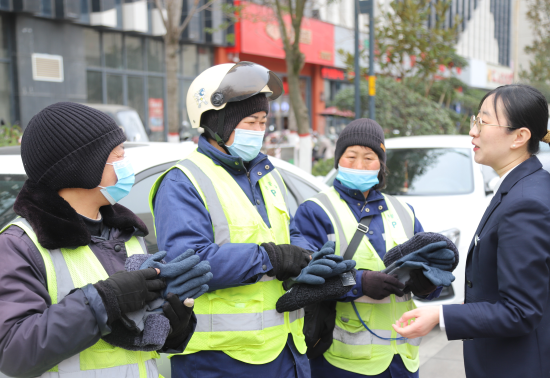 活动现场,邮储银行商洛市分行的工作人员早已将提前筹备的爱心物资整齐摆放,轻便保暖的帽子、防风防滑的防护手套、便携保温水杯等初春必备用品一应俱全。工作人员将物资逐一送到户外工作者手中,与他们亲切交谈,叮嘱大家注意添衣保暖,同时热情邀请大家走进“邮爱驿站”歇脚取暖、补充热水。“早春天气多变,早晚温差大,是你们的默默坚守,换来了城市的整洁畅通,这些实用的保暖用品,希望能为大家抵御春寒。”工作人员的暖心话语,让现场暖意融融。