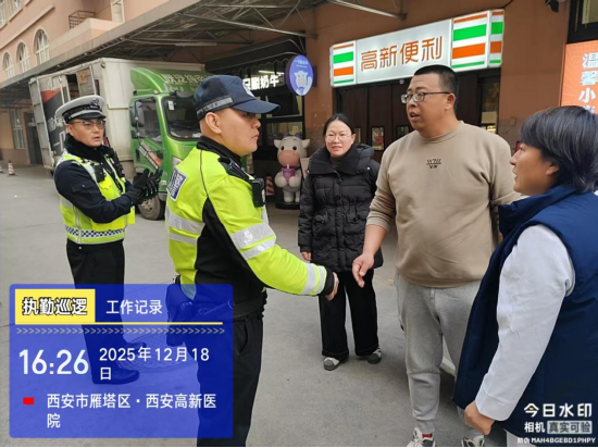 接到任务后,王斌立即与求助群众取得联系。电话那头声音慌张,家属因紧张而说不清具体位置。王斌一边温和安抚,一边迅速锁定车辆所在,并规划出最快通行路线。随后,他与刘世雄火速赶往西二环沣惠南路下桥口,提前守候那辆承载着新生命的车辆。