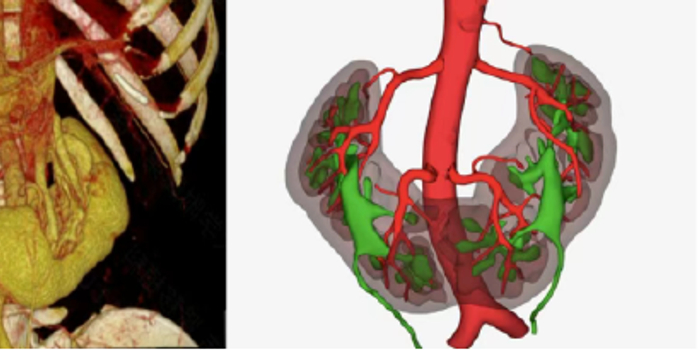 供者马蹄肾CT血管成像(CTA)及三维重建结构图