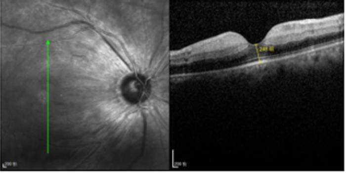 视网膜中央动脉阻塞典型症状为突发无痛性单眼视力丧失,眼底检查为视网膜苍白水肿,黄斑呈“樱桃红斑”,视盘正常。光相干断层扫描表现为后极部视网膜内层增厚,病灶呈高反射信号,视网膜正常层间结构消失。老年患者病因主要是动脉粥样硬化。对于青中年患者,需重视先天性心脏病的筛查,尤其需警惕卵圆孔未闭等可能病因。