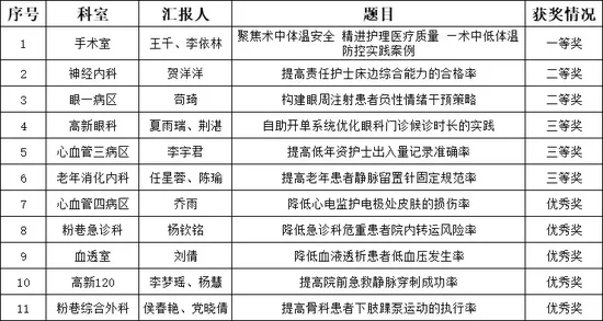 本次比赛聚焦临床护理核心难点,覆盖患者安全保障、并发症防控、护理能力提升、就医体验优化等多个关键领域。11个参赛团队通过现场汇报项目背景、改进目标、实施步骤、成效数据及经验总结的激烈角逐,最终评选出一等奖1名,二等奖2名,三等奖3名。