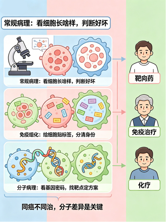 先跟大家说句实在话:常规病理看形态,免疫组化补细节,而分子病理,才是精准抗癌的“核心底气”。咱们先搞懂一个关键:为啥做了常规病理、免疫组化,还要额外做分子检测?