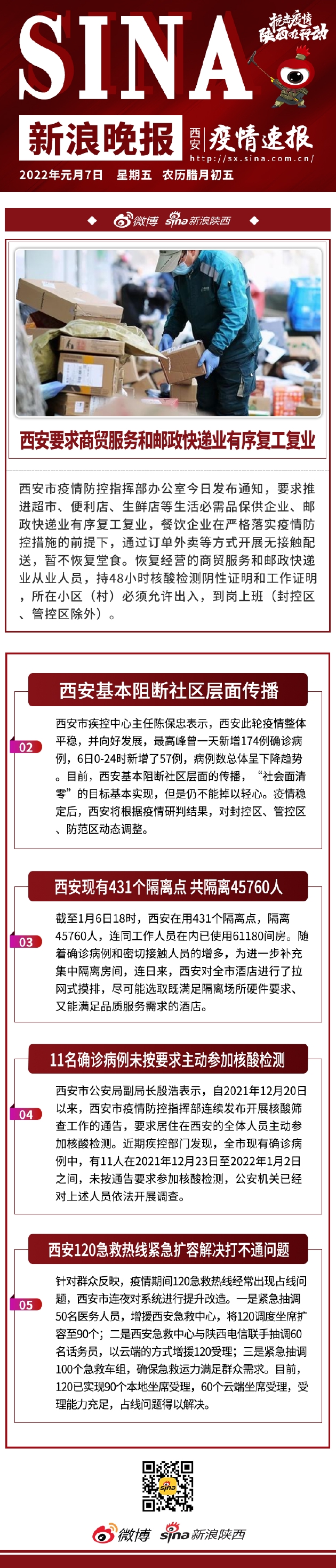 1月7日新浪晚报抗击疫情特刊:西安要求商贸服务餐饮快递业有序复工