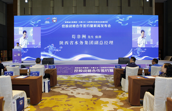 陕西水务集团副总经理苟非洲表示,多年来,陕西水务集团一直大力支持着陕西体育事业,“大秦之水”和球队相互扶持、携手共进、共同发展。此次合作,陕西水务集团将充分履行出资人职责有力支持长安竞技大秦之水足球队壮大发展,同时也让“大秦之水”天然优质矿泉水系列产品成为陕西知名产品、知名品牌,把“大秦之水”品牌打造成拉动陕西经济发展的“地域性名片”,为实现经济强省、文化强省、体育强省的目标,做出应有贡献。