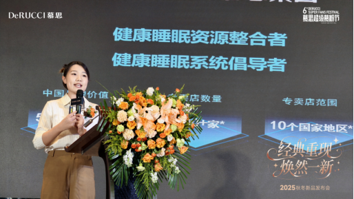 在万众期待中,慕思集团市场部总监夏新欣登台致辞。她首先对到场嘉宾表示热烈欢迎,并回顾了慕思始终致力于睡眠科技研发与舒适体验升级的初心。其阐述道:“本届慕粉节,我们把慕思秋冬新品带到西安,这是慕思通过数十年的智慧实践,本次新品臻选软包裹睡感床垫最优材质,聚焦功能性开发,致力于献给每位消费者满意的新时代睡眠方案。”