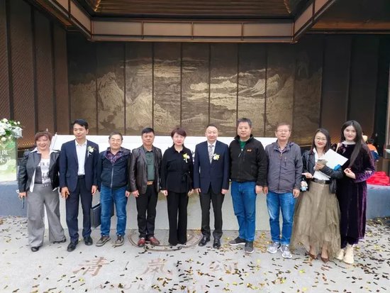 致辞结束后,西安美院书法系教授、博士生导师常春带着她撰写的书法作品为展览揭幕。西安市政协原副主席、陕西清华校友会荣誉会长王俊仁,中颐集团董事长、清华企业家协会西北分会主席李文革,联合国华人友好协会副秘书长、大国品牌论坛组委会西安办事处主任胡明英女士,西北3省中韩企业协会会长孔明先生,陕西银龄老年大学校长任芮瑶女士一同上台为风雅颂·清岚艺术节首届展览揭幕,标志着为期三个月的“风雅颂·首届清岚艺术节”正式开启。