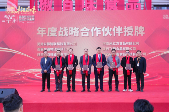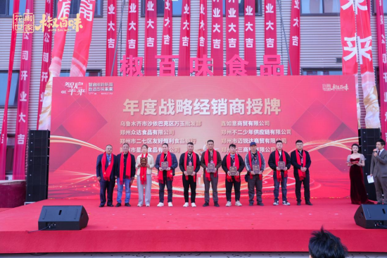 盛典期间,花椒世家为来自全国各地的优秀经销商与战略合作伙伴举行了隆重的授牌仪式。涵盖北京、成都、郑州、乌鲁木齐等关键市场的渠道伙伴,以及安得智联、米立方等产业链核心企业代表依次上台接受授牌。这一环节充分展示了花椒世家强大的渠道凝聚力与健康的产业生态,凸显了“厂商一体、互利共赢”的合作伙伴关系。