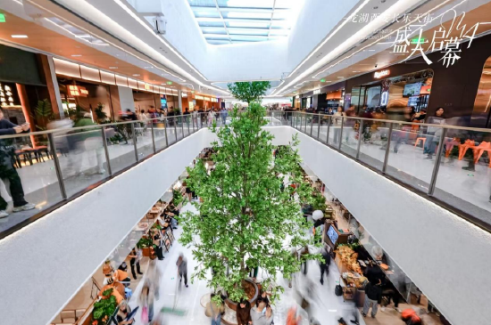 作为地铁8号线幸福林带北站上盖的TOD项目,长乐天街坐拥地铁环线的海量客流,毗邻3A级景区幸福林带的生态优势更赋予其“城市微度假”基因。项目以龙湖天街最新建设标准为基底,通过场景创新与人性化动线设计,构建“立体商业空间”。B1层“幸福食集”汇聚多元简餐和品质中岛品牌,融合烟火气与精致感;4层高街餐饮区通过绿植造景与内退式外摆,形成了通透开放的餐饮社交场;AB馆连廊以巨幅玻璃幕墙串联书店、茶咖等业态,打造光影交织的休憩长廊。全场有100余家品牌采用最新设计形象,从空间美学到服务细节全面升级,强化“品质感”体验。