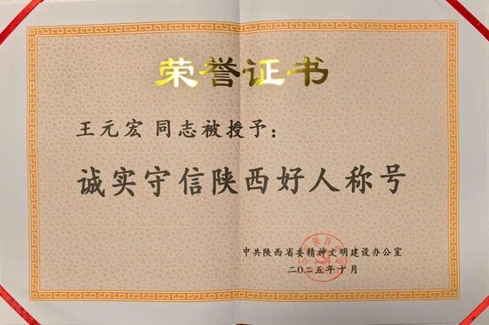十八载坚守诚信初心 王元宏荣登“陕西好人榜”