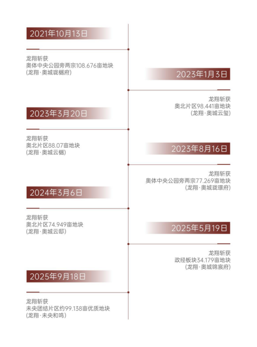2024年,龙翔·奥城珑樾府提前3个月交付,共计交付1129户,累计交付率高达91%。2025年,龙翔·奥城云玺、龙翔·奥城云樾两大项目同期交付,共计交付1836户,其中龙翔·奥城云樾提前半年交付,龙翔·奥城云玺交付客户满意度高达85%。
