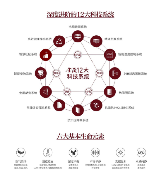 金茂的高端基因,始终与健康科技深度绑定。自2009年广渠金茂府开创科技居住先例以来,金茂深耕健康人居领域十四年,升级迭代的“十二大绿金智慧科技系统”,从温度、湿度、空气、阳光、水、声音六大生命元素出发,构建“舒温、舒湿、舒氧、舒音、舒净”的五舒空间,将健康融入生活肌理。
