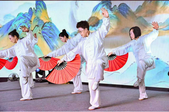 台上,熟悉的邻居化身耀眼明星。一场热情洋溢的《新年福气滚滚来》拉开序幕,孩子们则在《童韵迎新春》中跳跃欢腾,童真与年味交织。歌曲《小美满》《上春山》声音清澈,情感真挚;独唱《双脚踏上幸福路》饱满有力、振奋人心。诗朗诵《将进酒》,字句铿锵,文韵流转。《鉴心之魂》《水墨中国》等舞蹈翩跹动人,意境悠远。相声《文化达人》笑声不断,三句半《说说俺唐镇》亲切诙谐。太极社的《太极拳》《太极扇》刚柔并济,合唱《秋蝉》《再唱山歌给党听》《春风十万里》声声入心。。。。。。每一段表演,都是邻里们在生活之余反复打磨,全心投入的成果。
