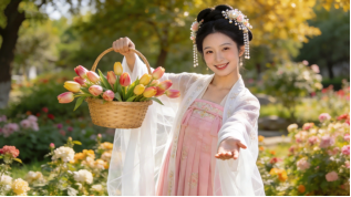 衣袂与光影、诗与自然花香相映