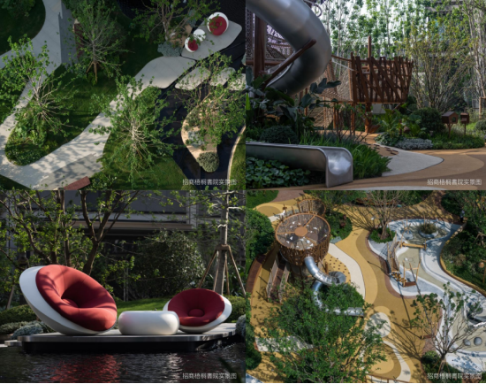 在揽阅,为了打造真正意义上的“成长型社区”,设计师花了三个月蹲守在儿童活动区,观察不同年龄段孩子的行为特征。于是有了无界水院、儿童森系冒险岛、萌宠森友会五大友好场景。