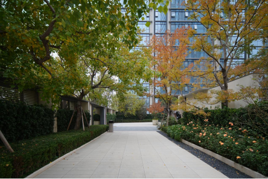 在园林营造上,以“都市森居”为理念,甄选名贵树种、石材与金属,于毫米分缝、循环水韵间精铸园境。范思哲黑大理石、葡萄牙米黄石材铺就归家礼序,全冠移植的乌桕、朴树等高大成树构筑四季流彩的植物博物馆。