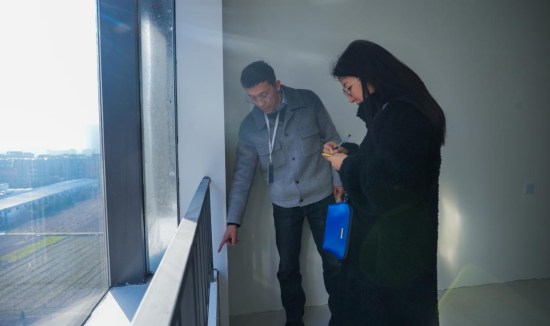 交付当日,专业验房团队全程陪同,置业顾问、验房工程师、物业工程师“三位一体”专属服务,对墙体、电气、门窗等每一项细节细致查验,精准记录业主需求,明确返修时限。这种“刀刃向内”的主动检视,正是经发置业作为国企的自觉担当。