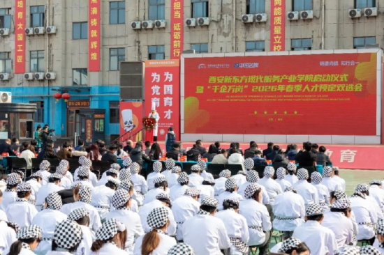 关注春风送暖,万象更新。2026年3月12日,西安新东方烹饪技工学校现代服务产业学院启动仪式暨“千企万岗”校企合作2026年春季人才预定双选会在学校操场隆重举行。本次活动以“产教融合筑根基 校企协同育人才”为主题,汇聚政府领导、行业协会、约40家餐饮名企及全校1000余名师生,共同见证校企合作新篇章的开启,为2026届毕业生搭建优质就业对接平台。
