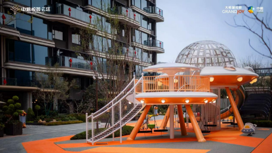 园中信步,随处可遇的花径是自然写下的诗行,转角便有惊喜。而那株象征祥瑞的文冠果,正耸立于园中,不仅寄托着“文冠当庭,金榜题名“的美好寓意,更成为云廷社区的精神地标,见证每一个家庭的其乐融融。更有可爱的“文小果”主题IP,用童真为园林注入亲切的温度。最欢腾的当属那片太空主题的儿童乐园,星辰与滑梯交织,让孩子们的想象力在宇宙中遨游。