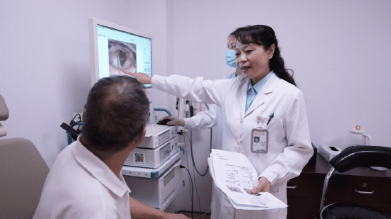 科室接收黄先生后,咽喉嗓音学科带头人方红雁、副主任周诗侗立即牵头组织团队,为其开展全方位的精准评估。通过喉肌电图检查,精准判定黄先生的喉返神经损伤程度,再结合电子喉镜、嗓音功能评估等综合检查,明确其属于声门闭合裂隙较大的单侧声带麻痹,已不适合单纯保守治疗。