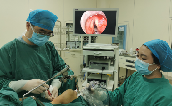 这项技术不仅能精准诊断声带麻痹,还能在肉毒素注射治疗痉挛性发声障碍时,精准定位喉部肌肉,提升治疗效果,是科室诊断端的核心优势技术。针对这类甲状腺术后声带麻痹患者,科室已成熟开展喉返神经修复术、声带脂肪注射术、Montgomery假体植入甲状软骨成形术等一系列外科治疗技术。