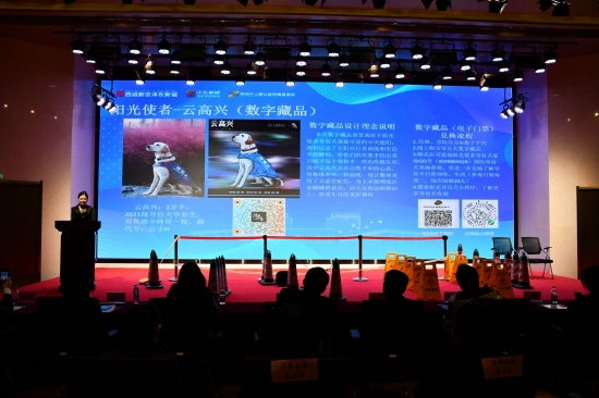 激活文创产品的创新力、设计力与传播力是历史文化管办文创公司的重要发展理念,活动仪式上,文创公司重点推出沣东自贸新天地首个公益数字文创产品——导盲犬云高兴,该产品以导盲犬为原型,运用现代科技手段,构建新的园区IP,打造具有公益价值和艺术价值的文创产品,让社会群众对导盲犬有更准确和客观的认识。