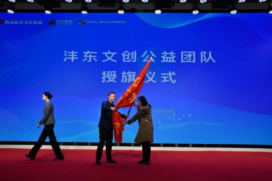 活动现场,沣东新城首个园区公益团队——沣东文创志愿服务队正式亮相。沣东文旅产业促进部为沣东文创公益服务志愿团队进行授旗,西安沣东文创产业园开发有限公司与西安上善公益慈善基金会签署《公益合作协议》,并对其进行物资捐赠,标志着园区公益服务增添了更强的新生力量与活力。