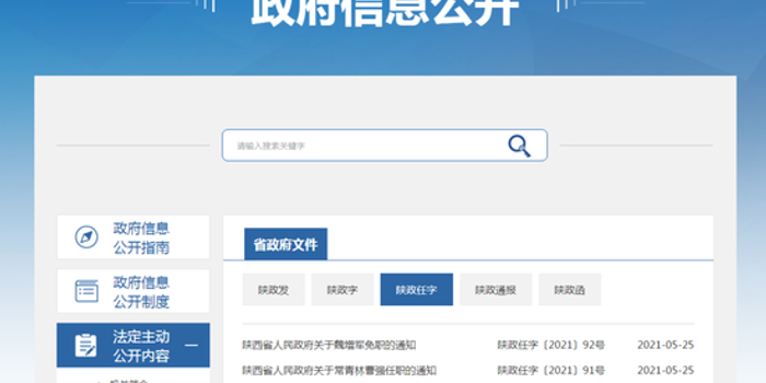 今天(5月25日),陕西省人民政府发布一批人事任免,全文如下: