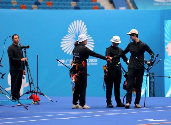 第十五届全国运动会女子反曲弓团体赛11月19日在深圳市体育中心体育场上演多场精彩对决。由西安籍选手马毅静、茹清宁与宝鸡名将翟悦君组成的陕西队,最终在铜牌争夺战中凭借附加赛的稳定发挥击败福建队,斩获该项目铜牌。这是陕西女子射箭队自1983年组队以来,在全运会团体赛事中取得的历史最佳战绩,山东队、河南队分获金银牌。
