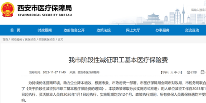 关注为持续优化营商环境、助力企业降本增效,11月27日,西安市医疗保障局发布了《关于阶段性减征西安市职工基本医疗保险费的通知》,推出职工医保费阶段性减征政策,预计可为全市各类用人单位及灵活就业人员累计减负约39.13亿元。